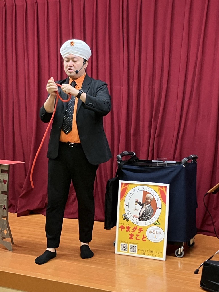 1人目のスペシャルゲストとして、新潟の手品師(スパイシーマジシャン)やまグチまことさんが登場。インド風の怪しげな衣装から繰り出される鮮やかなマジックが参加者を魅了します。