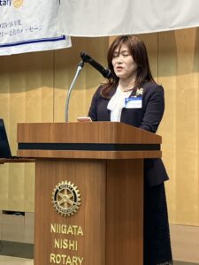 小林千鶴 次年度会長は2014年7月入会。森田年度(2021‐2022年度)に幹事を経験したことで、ロータリアンの自覚と責任を強く感じたということです。「これまでの伝統に柔らかさや新しい視線を加えてできれば、それもひとつの奉仕のかたちだと考えています。」とクラブ初の女性会長として新たな歴史を刻む決意を語りました。