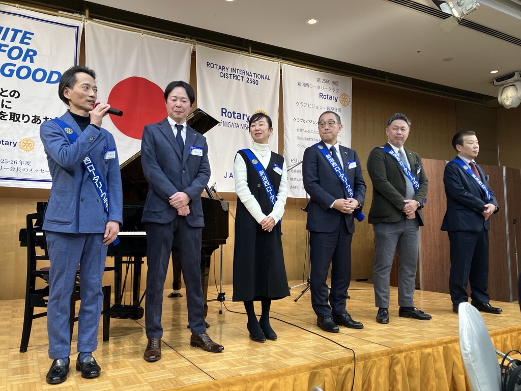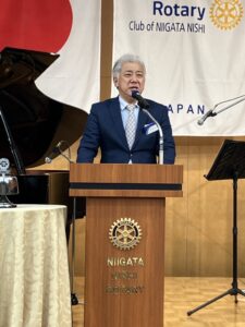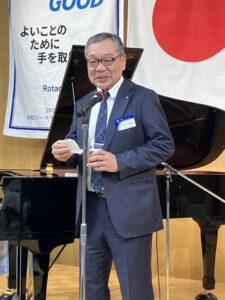 ご家族・パートナー14人を含む約60人が参加して、第2例会と新年恒例のパートナーシップ家族例会が開かれました。中村副会長の点鐘でスタートしました。