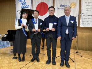 満20歳を迎えた会員のお子さんに、中村副会長からお祝いの品が贈呈されました。